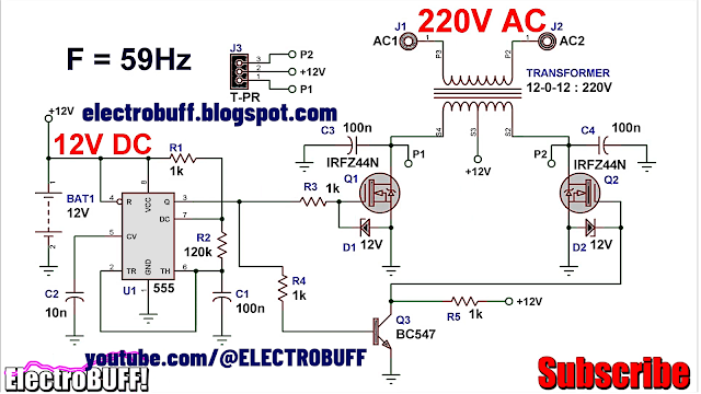 Inverter Circuit with 555 Timer IC electrobuff.blogspot.com